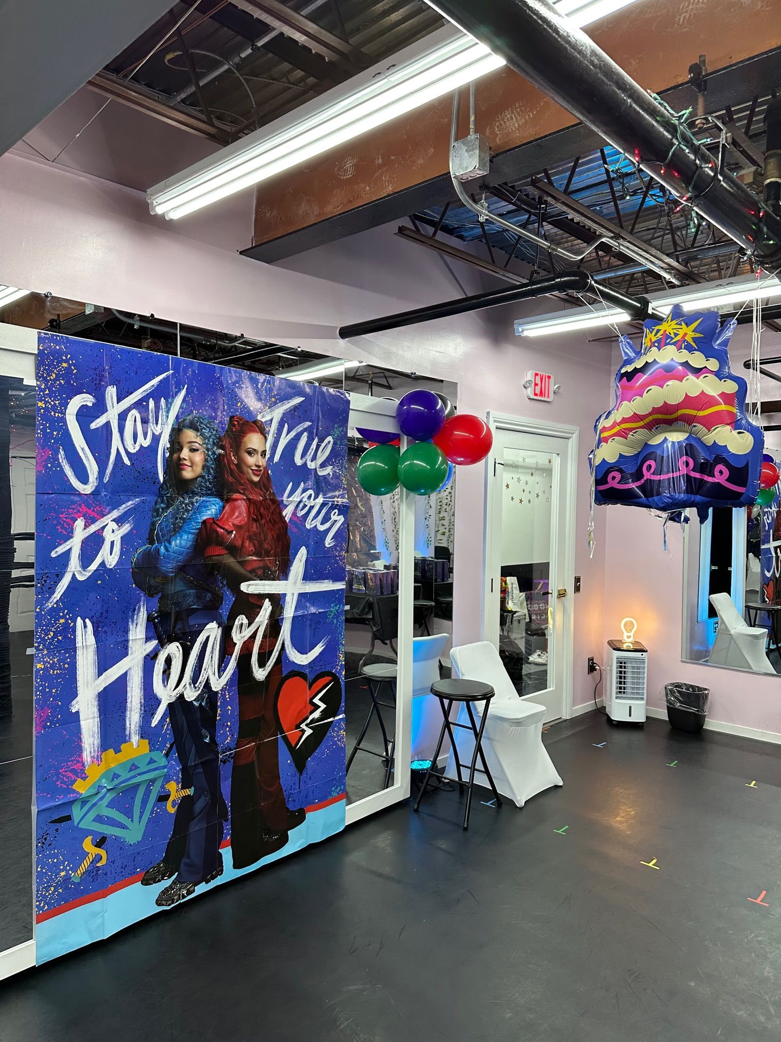 Party goers can wear anything comfortable to move in and may wear socks, dance shoes, or be barefoot. Families provide their own food, beverages, paper goods, and decorations unless you are adding onto your package. Many families order pizza or bring cake or we can take care of that for if you elect for that. We have a fridge, candles, and matches. Any song requests, themes, or early drop-off of supplies can be coordinated with our office staff.